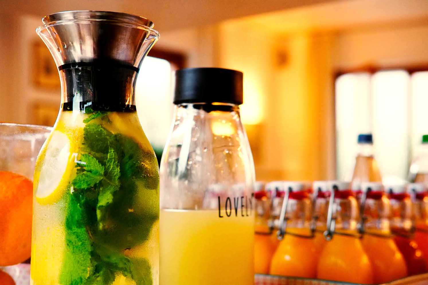 - Idratazione: bevete molti liquidi iniziando la giornata con acqua, succhi di frutta o verdura e/o tè non troppo forte. E' importantissimo ingerire molti liquidi: bevete almeno due litri di acqua (8 bicchieri) liquidi al giorno.